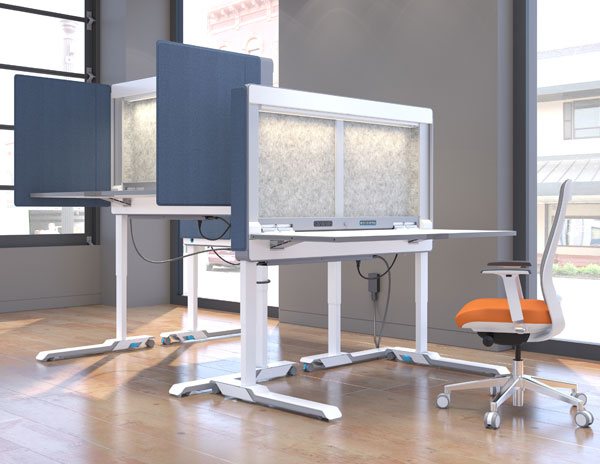 Amobi Desks are mobile workstations that arrive pre-assembled and easily transport and fold up to store when not in use. Choose Desk/One for an open workstation or Desk/Focus with magnetic side panels that offer additional privacy.