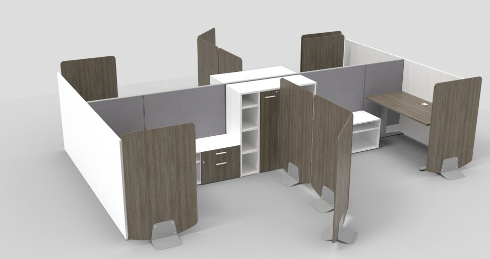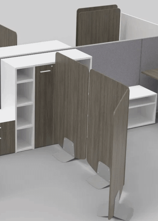 “Large, freestanding screens tend to be either light and mobile or sculptural, stand-alone features. With this screen we brought a sense of scale and subtle form to a large, vertical surface, supporting it with a weighted centre base, giving the composition a quiet and distinct character with a large range of usability. The single point base easily enables the linking of numerous screens together, eliminating the clustering of feet, resulting in a more unified composition.” – Lee Fletcher, Fig40