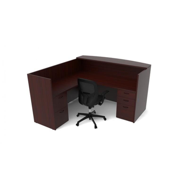 OTG Laminate L-Shape Reception Desk with Matching Laminate Transaction Top 2 Storage Pedestals-Box, Box, File & File, File Available in 4 Colors- American Mahogany, American Cherry, American Dark Cherry, American Espresso