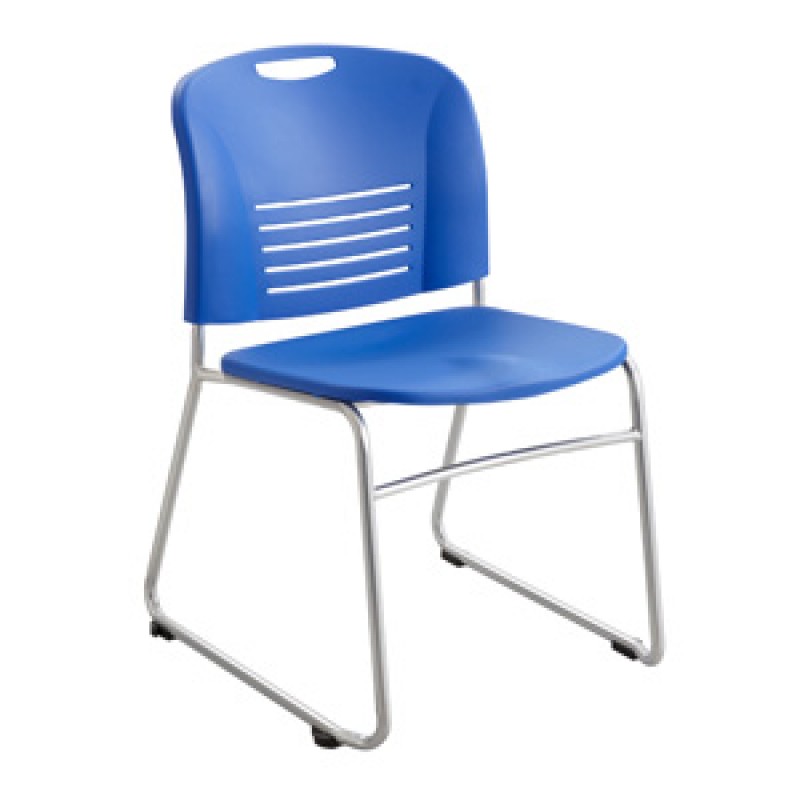SAFCO VY Sled base Guest Chair you can choose from Sled Base or Straight Leg (with casters) frame. Available in an all-plastic seat and back or optional upholstered seat (grades 1-4 and COM). Has a wall saver that ensures no wall scrapes or damage! Stacks up to 12 high and up to 18 high on a chair cart with a 350lbs weight capacity. Available in plastic colors Black (BL), Crimson (CI), Grass (GS), Lapis (LA) or Pearl (PE). Features a steel powder coat frame and silver finish. Two chairs per carton. Limited Lifetime Warranty.